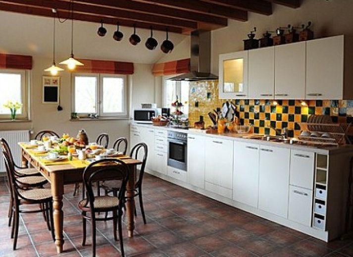 Die Ferienwohnung ist ein separates Gebäude für 6 Personen. Im Erdgeschoss gibt es den Flur, das Wohnzimmer mit Sitzecke, in dem sie allen modernen Komfort wie Internet und Flatscreen genießen können. Eine offene Küche mit Essecke und eine nach Süden ausgerichtete Terrasse. Ein Badezimmer mit doppeltem Waschbecken, Dusche und separater Toilette. Es gibt auch ein Zimmer für zwei Personen.