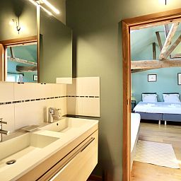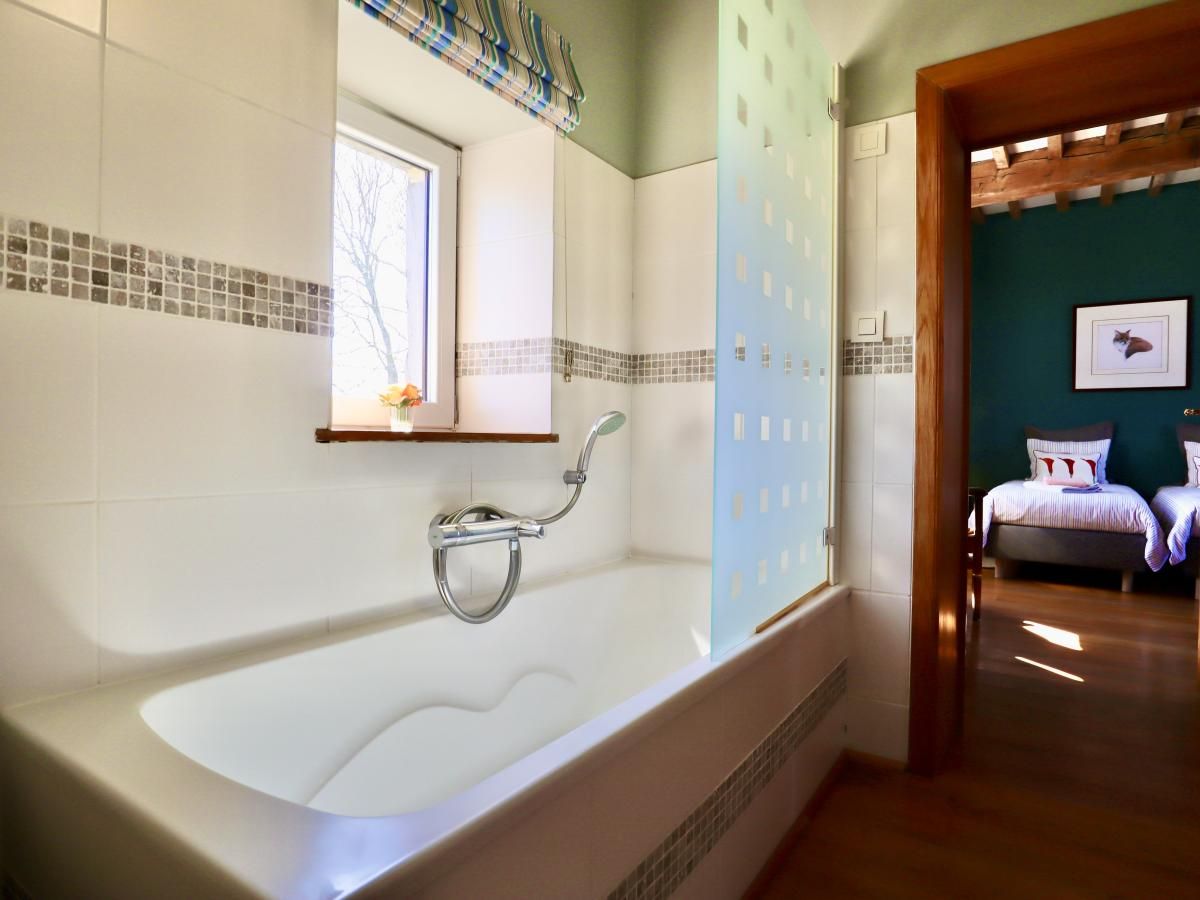 In der 1. Etage: Schlafzimmer mit 2x Einzelbett , Badezimmer mit Badewanne, 2x Waschbecken, Toilette