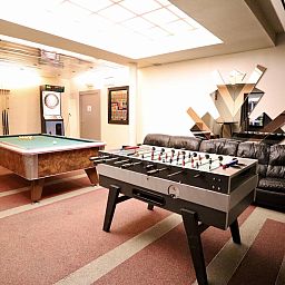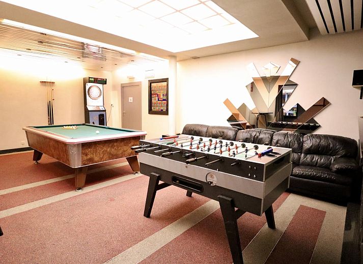 Parterre: (Aufenthaltsraum(TV, Kamin), Esszimmer, offene Küche(Kochplatte(5 Kochplatten), Wasserkocher, Kochherd, Dunstabzugshaube, Kaffeemaschine(senseo pads), Kaffeemaschine(Filter), Backofen, Mikrowelle, Geschirrspüler, Kühl-/Gefrierkombination), 2x Schlafzimmer(2x Einzelbett(Bettdecke, 90 x 200 cm)), Schlafzimmer mit Badezimmer(3x Einzelbett(Bettdecke, 90 x 200 cm), Dusche, Waschbecken, Toilette), Schlafzimmer mit Badezimmer(2x Einzelbett(Bettdecke, 90 x 200 cm), Dusche, Waschbecken, Toilette), Badezimmer(Badewanne, Waschbecken, Toilette), Waschraum(Waschbecken), Freizeitraum(Bar, Tischfußball, Dart, Billard), Ruheraum(Wellness Badewanne, Dusche, Sauna), Pool(alleinige Nutzung, erwärmt, innen, 7 x 4 m., Ganzjährig geöffnet))