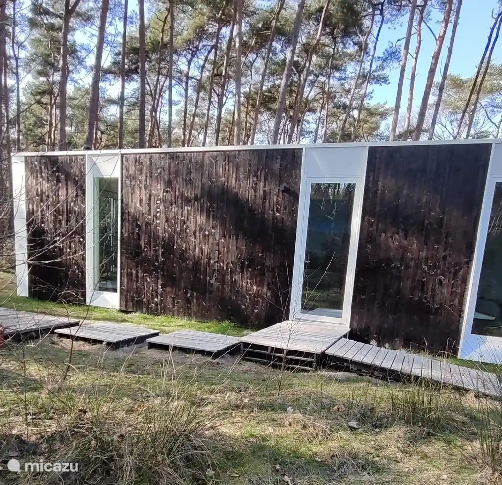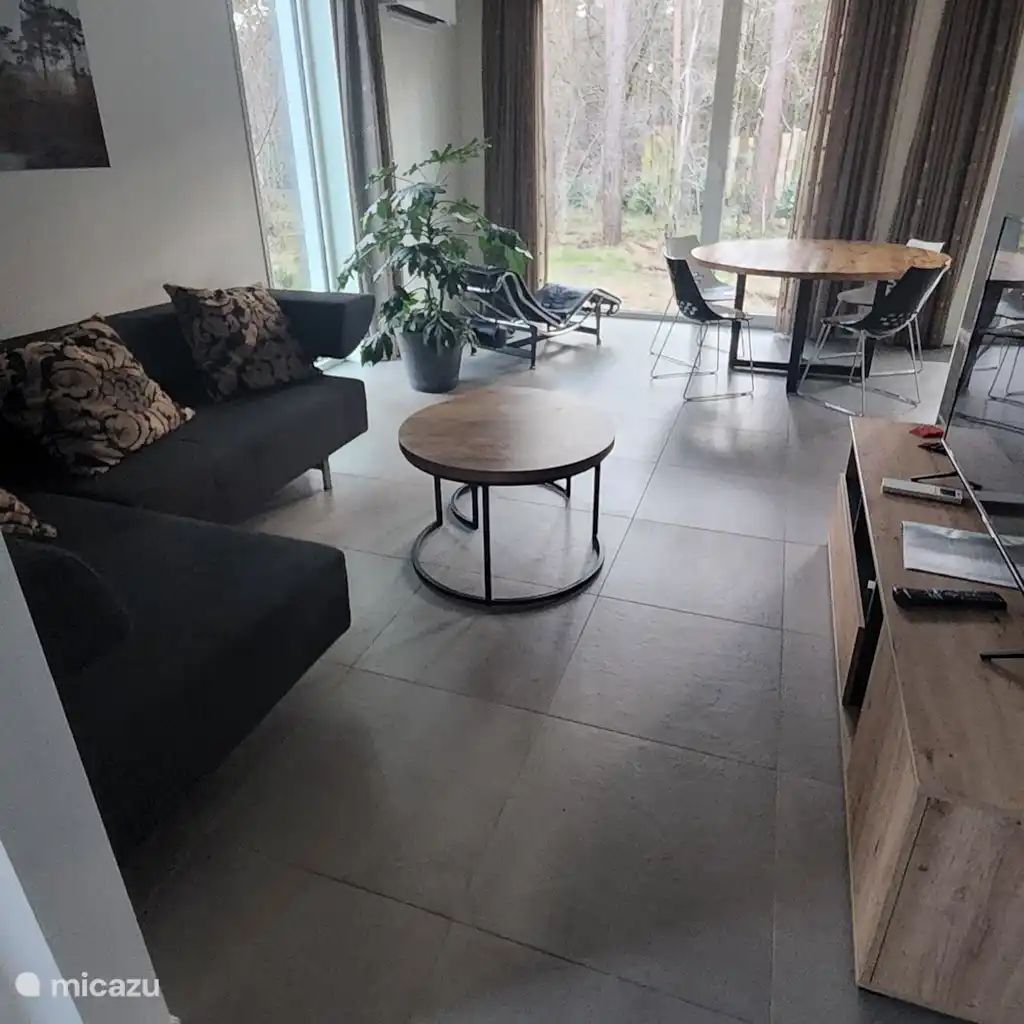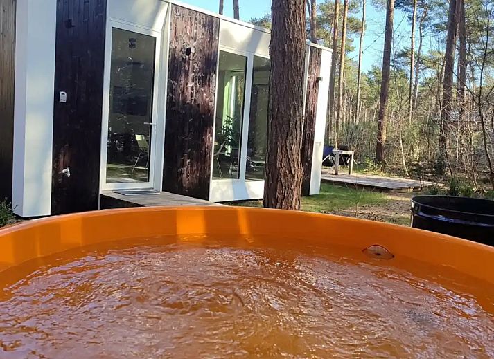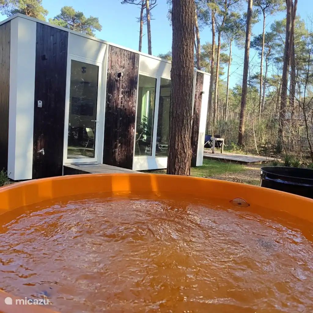Maisonnette neuve (score énergétique 27 = A) de 80 m² sur un terrain boisé privé, tout confort et avec vue sur la nature. Située dans une impasse en gravier, entourée de bois. À l'extérieur, une grande terrasse et un coin feu avec barbecue. Jacuzzi Design Dutchtub original Weltevree, chauffé au bois !Salle de bains neuve avec douche à effet pluie et double lavabo. Cuisine neuve équipée d'une plaque à induction, d'un four, d'une machine Dolce Gusto, d'une bouilloire, d'un réfrigérateur et d'un congélateur. Wi-Fi et télévision, climatisation par pompe à chaleur assurant à la fois le chauffage et la climatisation. Dans...