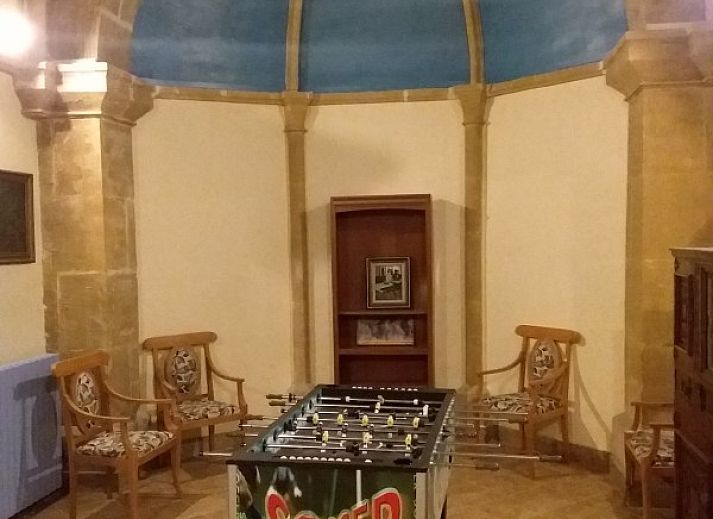 Il y a 8 chambres pour un total de 15 personnes. Il y a 4 salles de bains avec douches et lavabos. Chaque chambre dispose de son propre lavabo. Une chambre au rez-de-chaussée dispose d'une douche à l'italienne et est accessible aux fauteuils roulants. La salle à manger, qui peut également accueillir 15 personnes, est suivie d'un salon doté d'un poêle à bois. Il y a également une chapelle spacieuse. Celle-ci contient plusieurs fauteuils, un baby-foot et un jeu de fléchettes. Il s'agit donc d'un espace supplémentaire pour s'asseoir et se détendre. Bien sûr, il y a aussi une cuisine équipée avec un lave-vaisselle.