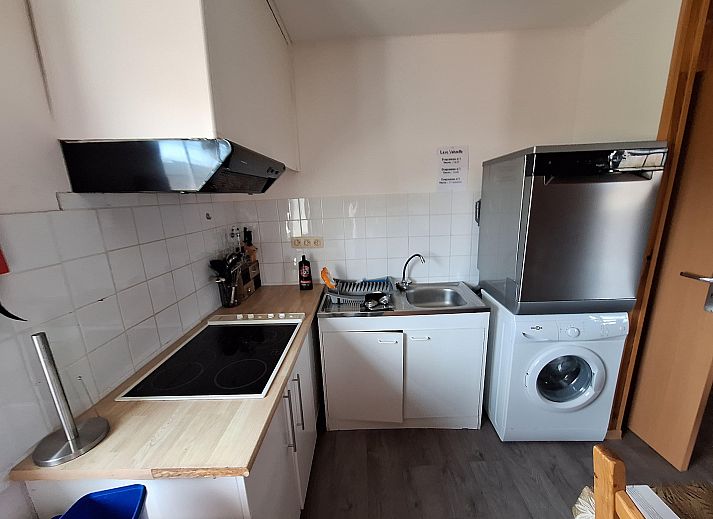 Au 1er étage: (cuisine ouverte(bouilloire, cuisinière(4 plaques de cuisson, vitrocéramique), cafetière/percolateur(filtre, pads), four, micro ondes, 2x réfrigérateur(+ congélateur), lave-linge ), salle à manger-salon(canapé-lit double(140 x 200 cm), TV, table, radio), chambre(lit double(140 x 200 cm), table à repasser, fer à repasser), salle de bains(douche(adaptés pour les handicapés), lavabo, WC(adaptés pour les handicapés), sèche-cheveux))