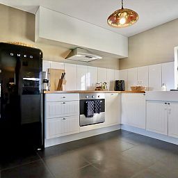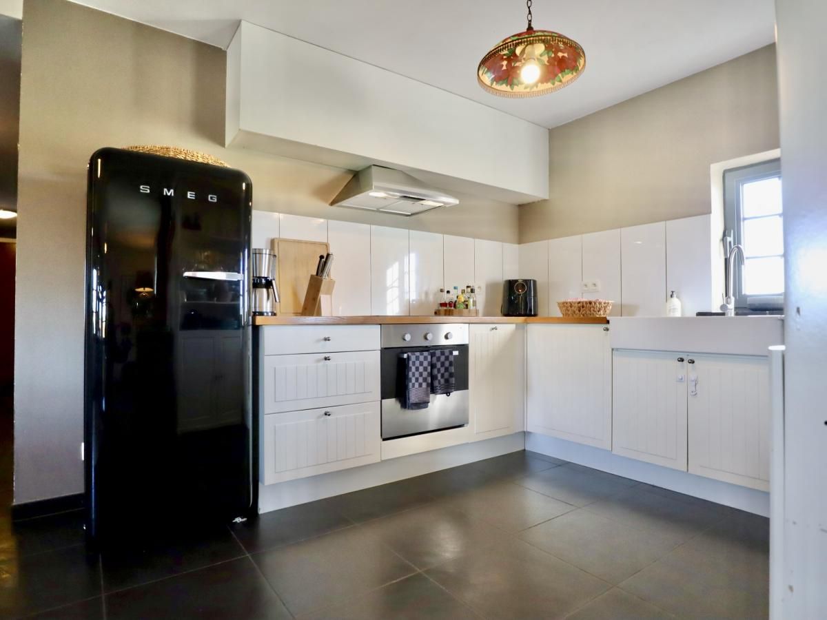 Rez-de-chaussée: cuisine ouverte avec bouilloire, cuisinière, cafetière(filtre), four, micro ondes, lave-vaisselle , réfrigérateur congélateur , séjour/salle à manger avec TV, table, coin salon, billard , chambre avec lit double(160 x 200 cm) , chambre avec lit double(140 x 200 cm) , salle de bain avec douche, lavabo , WC